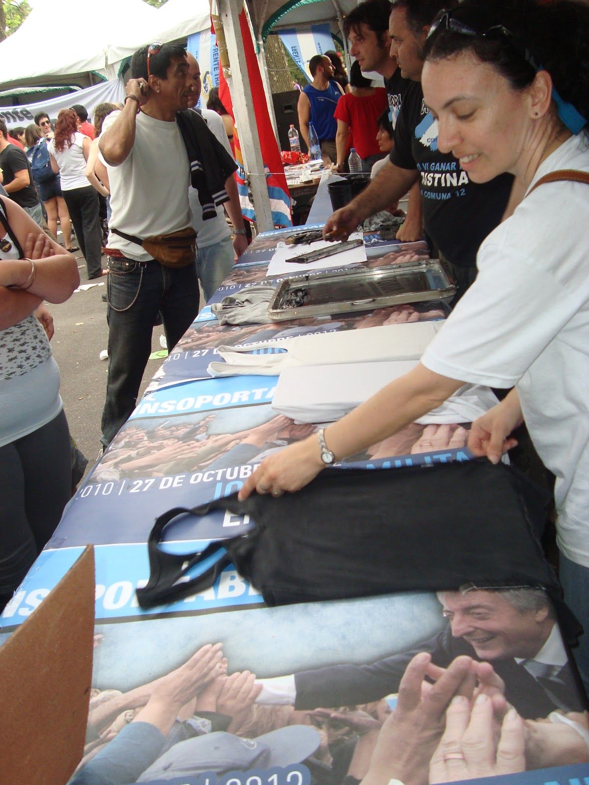 Durante toda la tarde, los compañeros de La Cámpora realizaron impresiones de remeras con la técnica de impresión serigráfica. Con tres motivos distintos del lema convocante "Insoportablemente vivo" junto con la imagen de Néstor, la propuesta resultó un éxito: se realizaron miles de remeras que después paseaban por todo el Parque haciéndose notar.