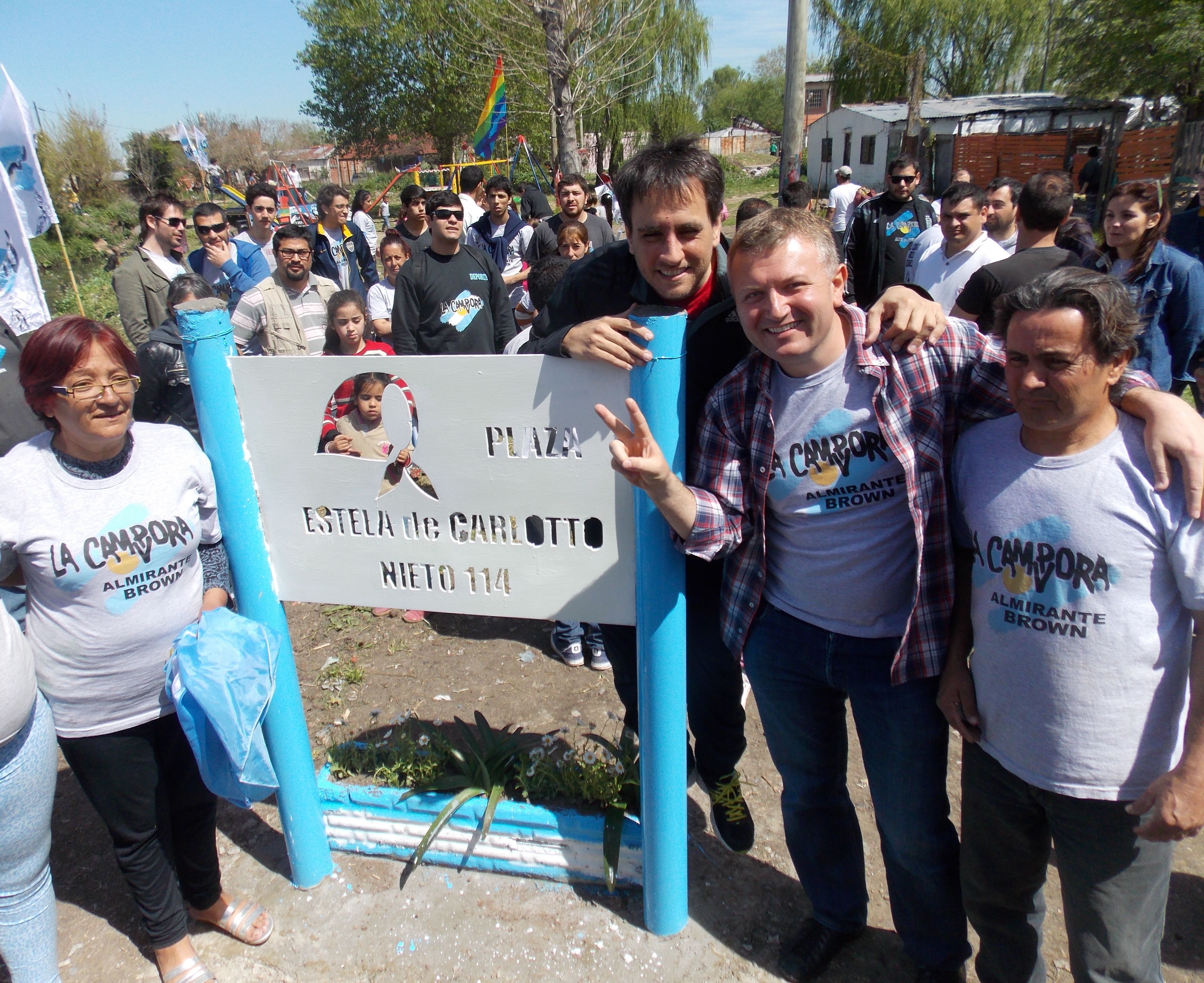 Con la presencia del Diputado Nacional Juan Cabandié, junto a militantes de La Cámpora, integrantes de la Biblioteca Popular Gabriela Mistral y vecinos del barrio se realizó el bautismo de la plaza bajo el nombre de "Plaza Estela de Carlotto - nieto 114", en reconocimiento a la lucha y militancia de las Abuelas de Plaza de mayo y en particular a su presidenta Estela, en el año en que gracias a su incansable trabajo lograron la recuperación de Guido, el nieto 114, tan esperado. “Esta plaza es el resultado de un trabajo de todo el barrio. Acá, como en miles de barrios del país, están presentes luchadores populares, luchadores como Estela, como las abuelas, que cuando comenzaron su búsqueda tenían dos caminos, el de la lucha individual o el de la lucha colectiva, y eligieron la colectiva porque nada se puede lograr si no es trabajando junto al otroˮ expresó Cabandié quien caminó por las calles del barrio y conversó con los vecinos sobre las problemáticas locales. “En esta plaza vemos el resultado de una lucha colectiva para mejorar la calidad de vida de nuestro pueblo. Los felicito y los invito a seguir participando, porque sólo con participación podemos seguir consolidando este proceso nacional y popular de inclusión socialˮ, concluyó Juan.