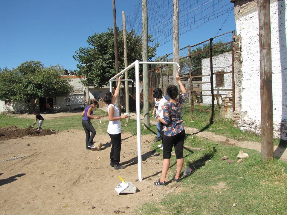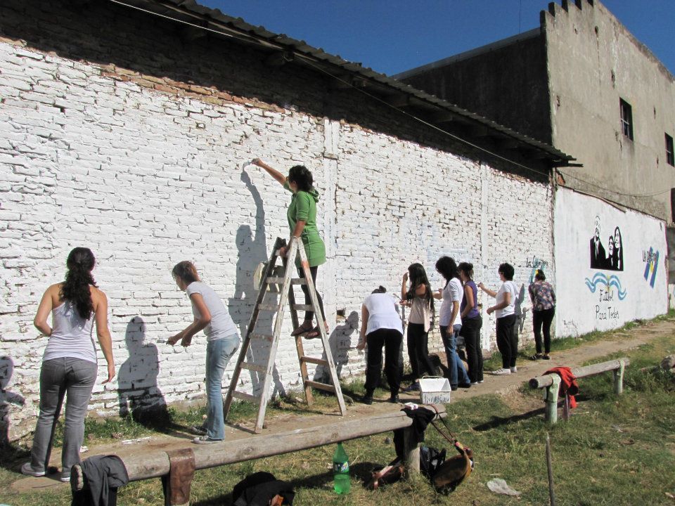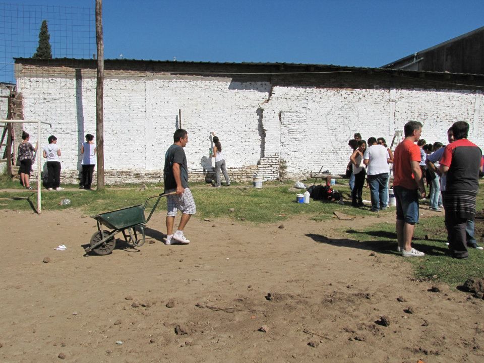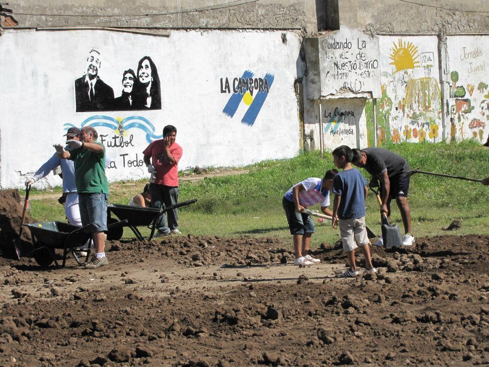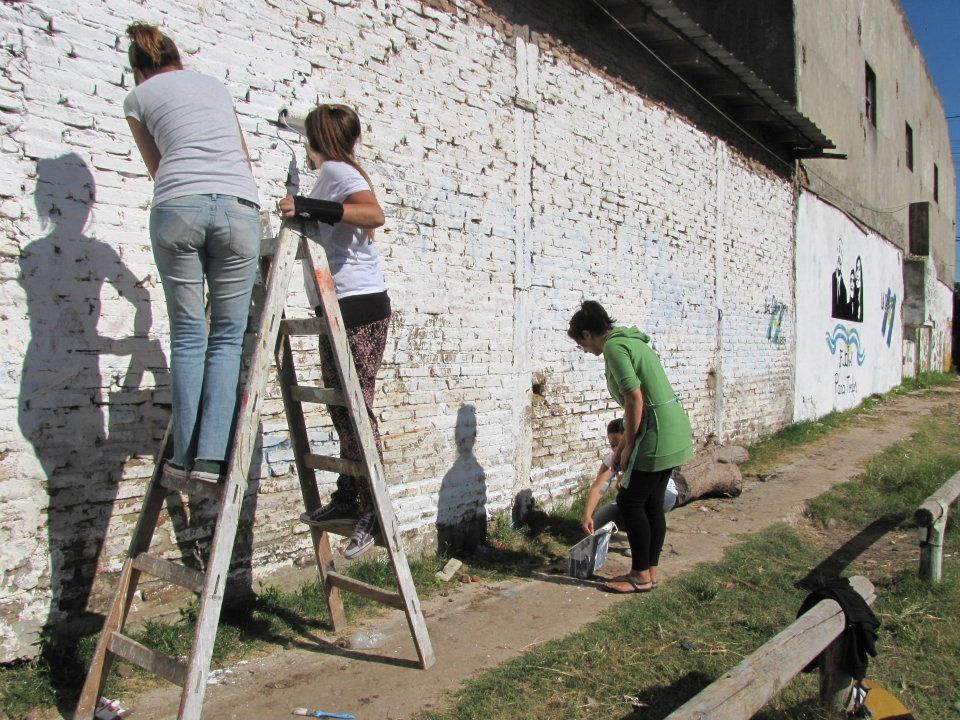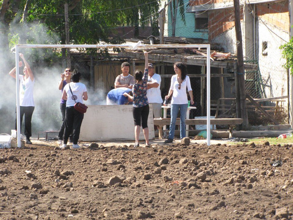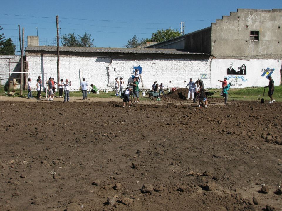 Jornada de acondicionamiento de una cancha en Villa Azul y pintada de mural por La Cámpora Avellaneda