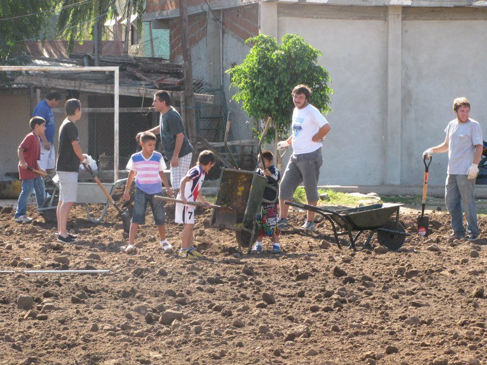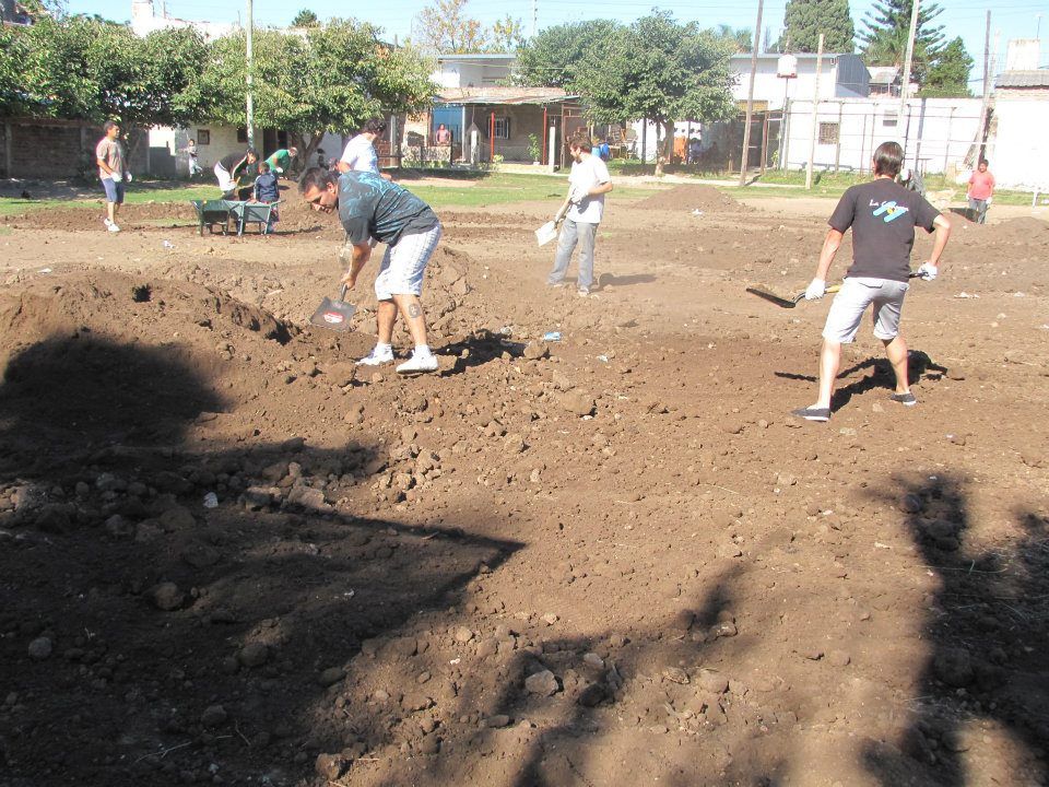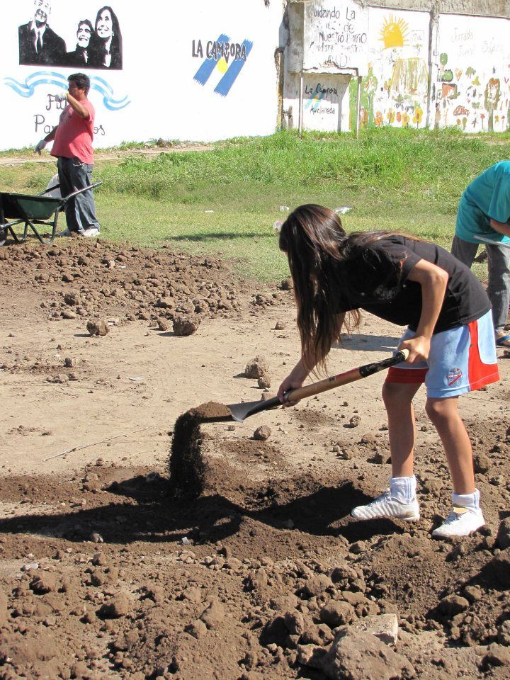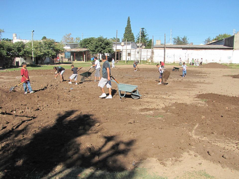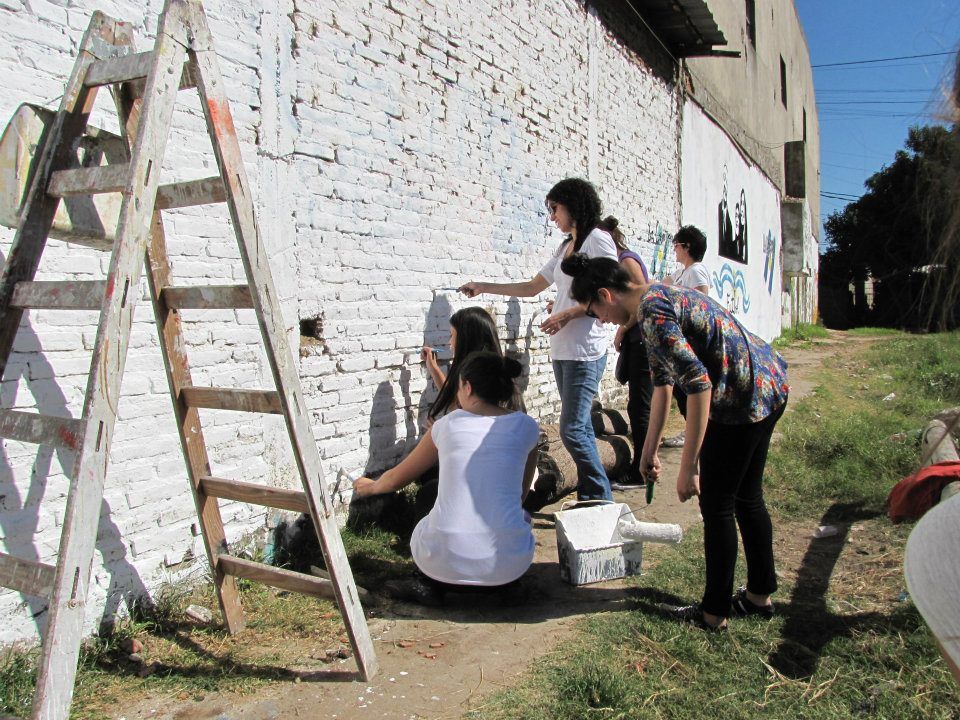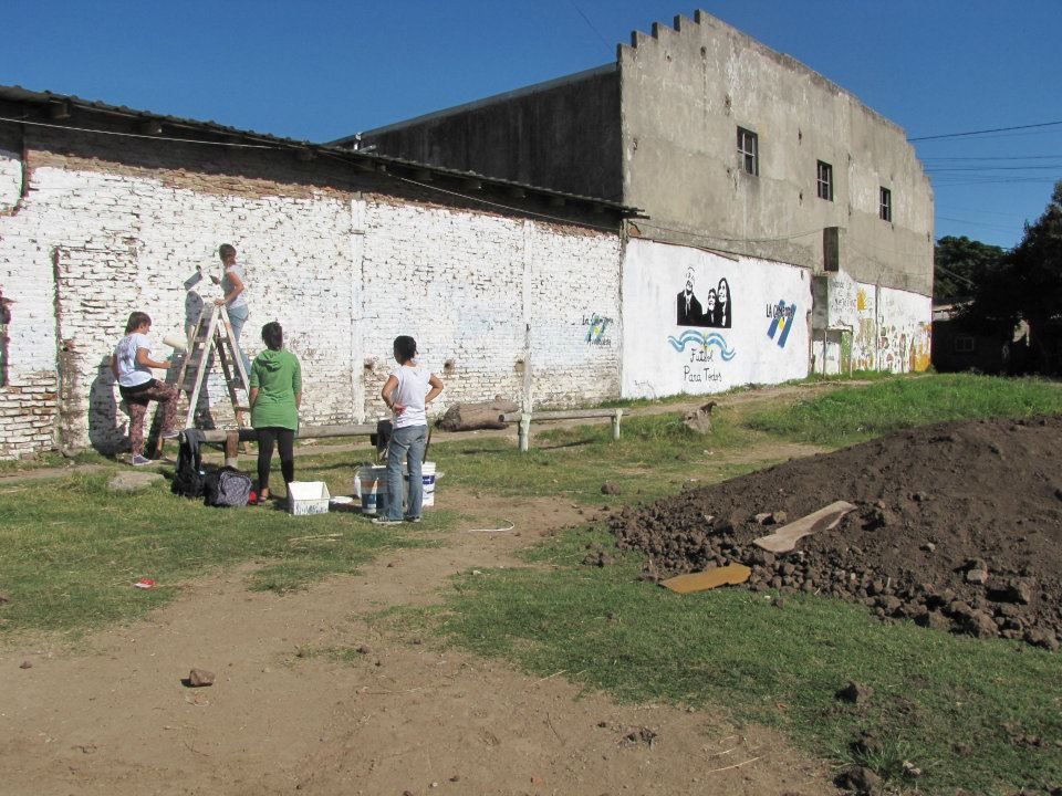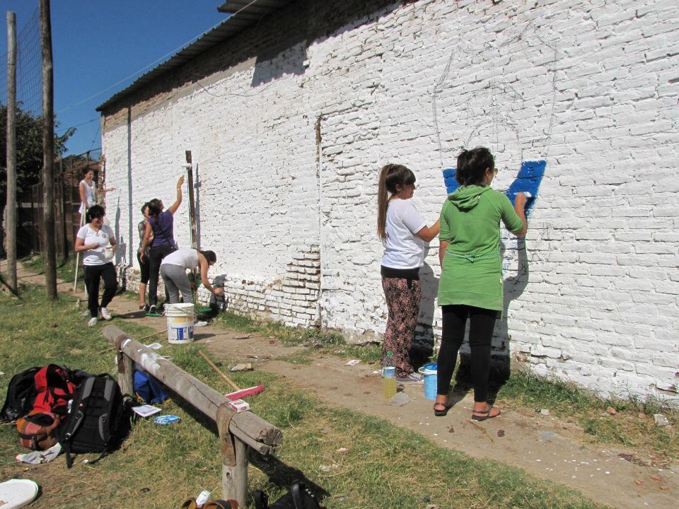 Jornada de acondicionamiento de una cancha en Villa Azul y pintada de mural por La Cámpora Avellaneda