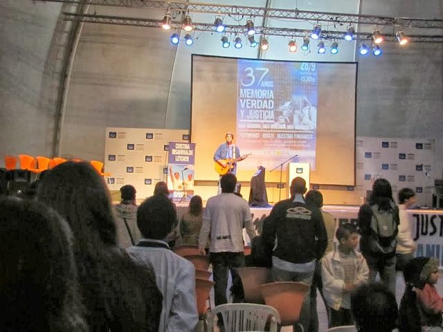 Antes de cerrar la jornada todos los compañeros presentes tuvieron la grata sorpresa y el honor de escuchar a Ignacio Copani, quien se acerco a participar del la Jornada por la Memoria, Verdad y Justicia brindada en la universidad del distrito donde nació.
