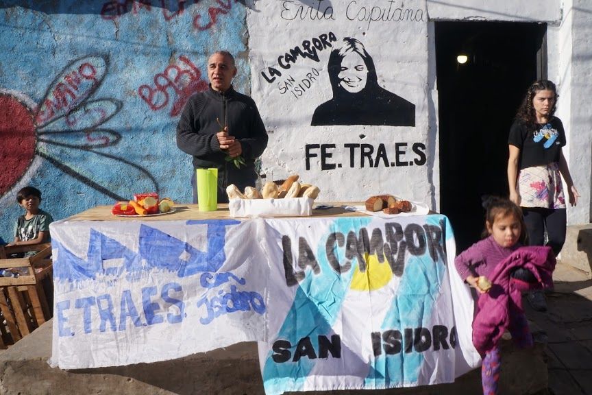 Tomando sus banderas y sus luchas por la justicia social, realizamos ollas populares, misas, jornadas de refacción de casas y espacios comunes y juegos con lxs niñxs.