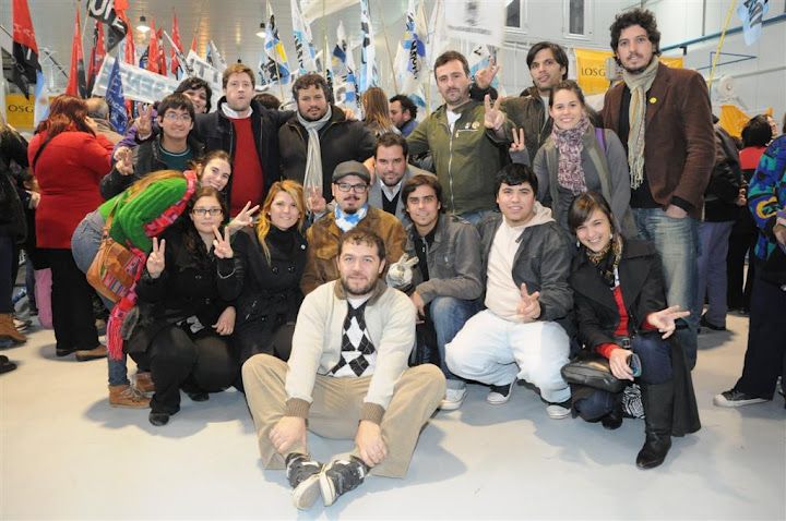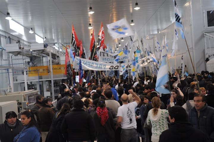 Cantando y bailando con gran emoción, las banderas celestes y blancas de La Cámpora inundaron la fábrica con el ritmo de la murga y las trompetas, que hicieron bailar a todos los presentes.