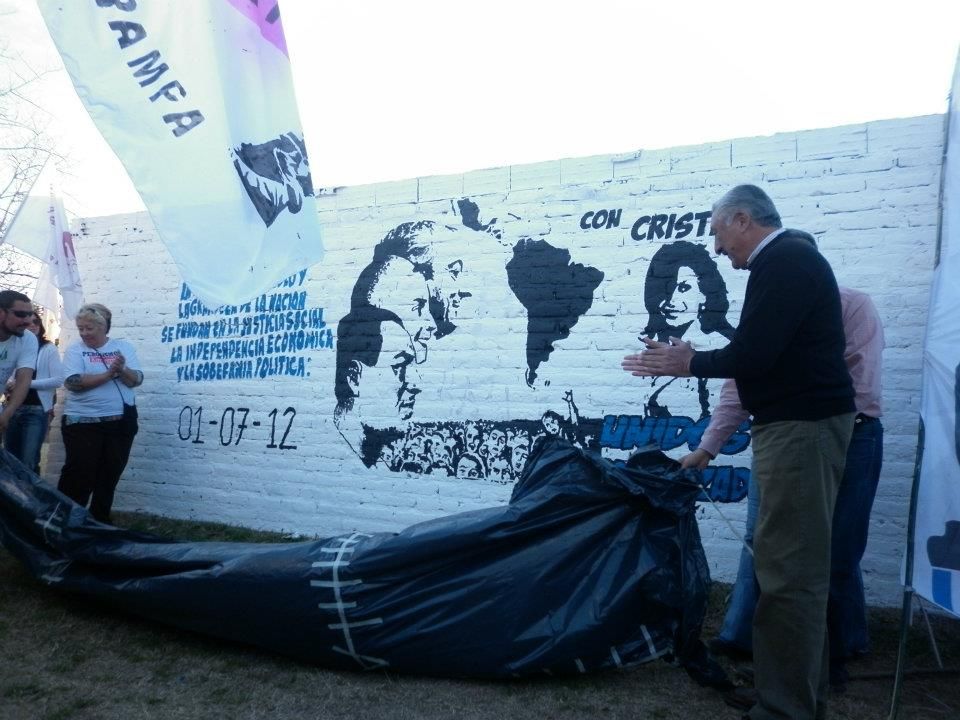 Luego se descubrió el mural con la imagen del recordado General, de la amada Evita, del inolvidable Néstor y de la conductora Cristina Fernández, en el marco de la Patria Grande Latinoamericana.