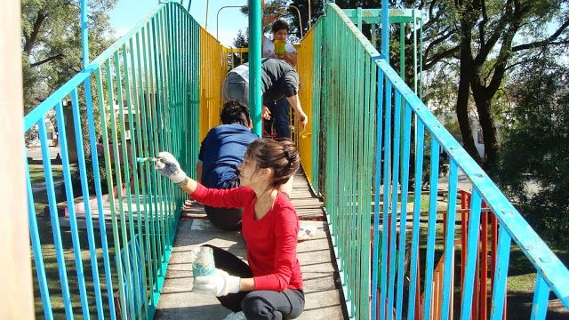 El pasado sábado 1 ° de junio, militantes de diferentes localidades de la 2da sección electoral se reunieron en la ciudad bonaerense de Colón para realizar juntos una jornada solidaria en beneficio de los vecinos y, sobre todo, de los más pequeños de la zona.Aproximadamente a las 9 de la mañana comenzaron a llegar compañeros de Salto, Carmen de Areco, Pergamino y los mismos colonenses, reuniéndose en la plaza central para comenzar allí los preparativos de un gran día. Entre todos se distribuyeron las tareas: lijado y pintado de más de 50 juegos infantiles con que cuenta la plaza, arreglo de canteros, blanqueo de paredón y pintada de mural, puesta en marcha de una radio abierta, entre muchas labores más.