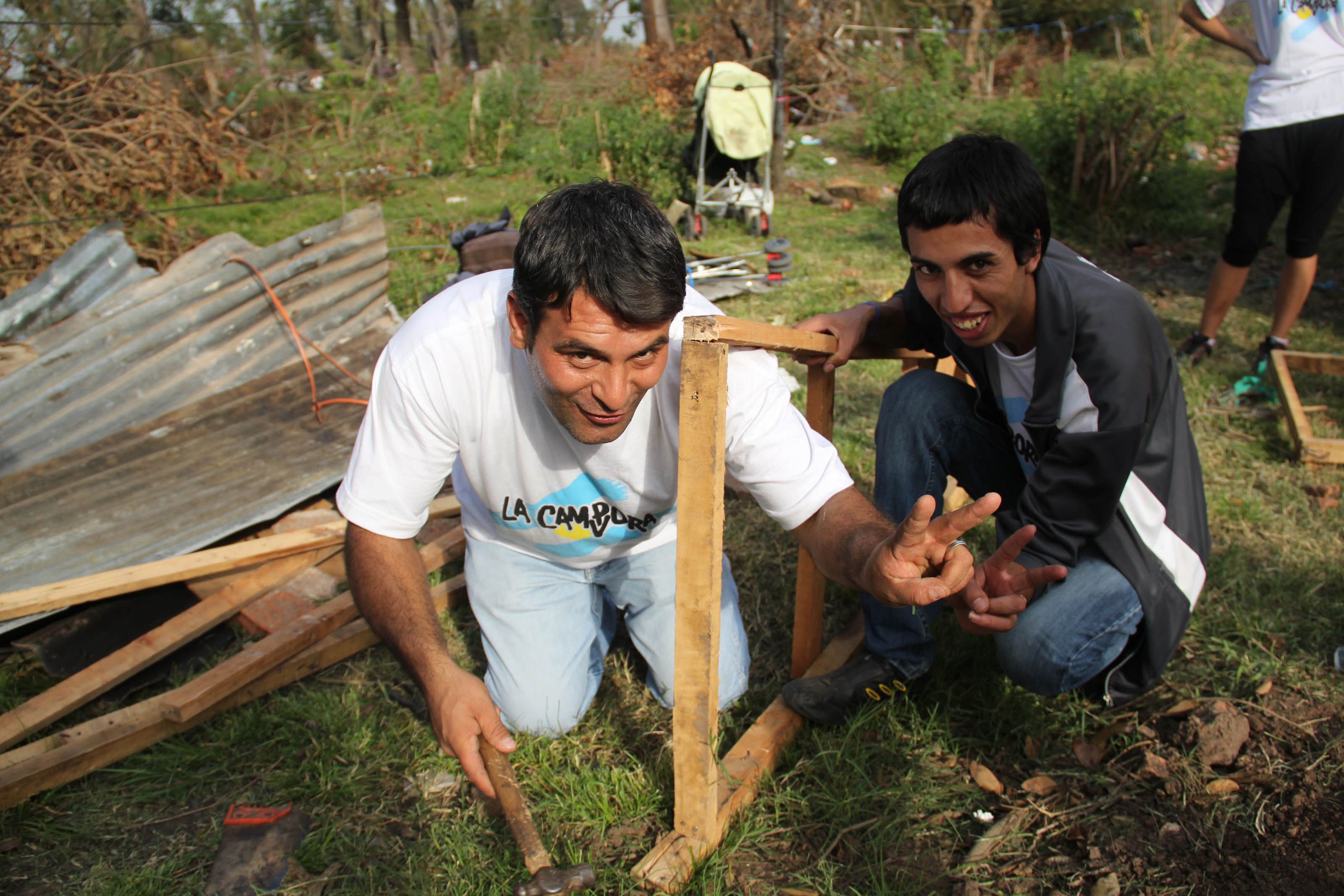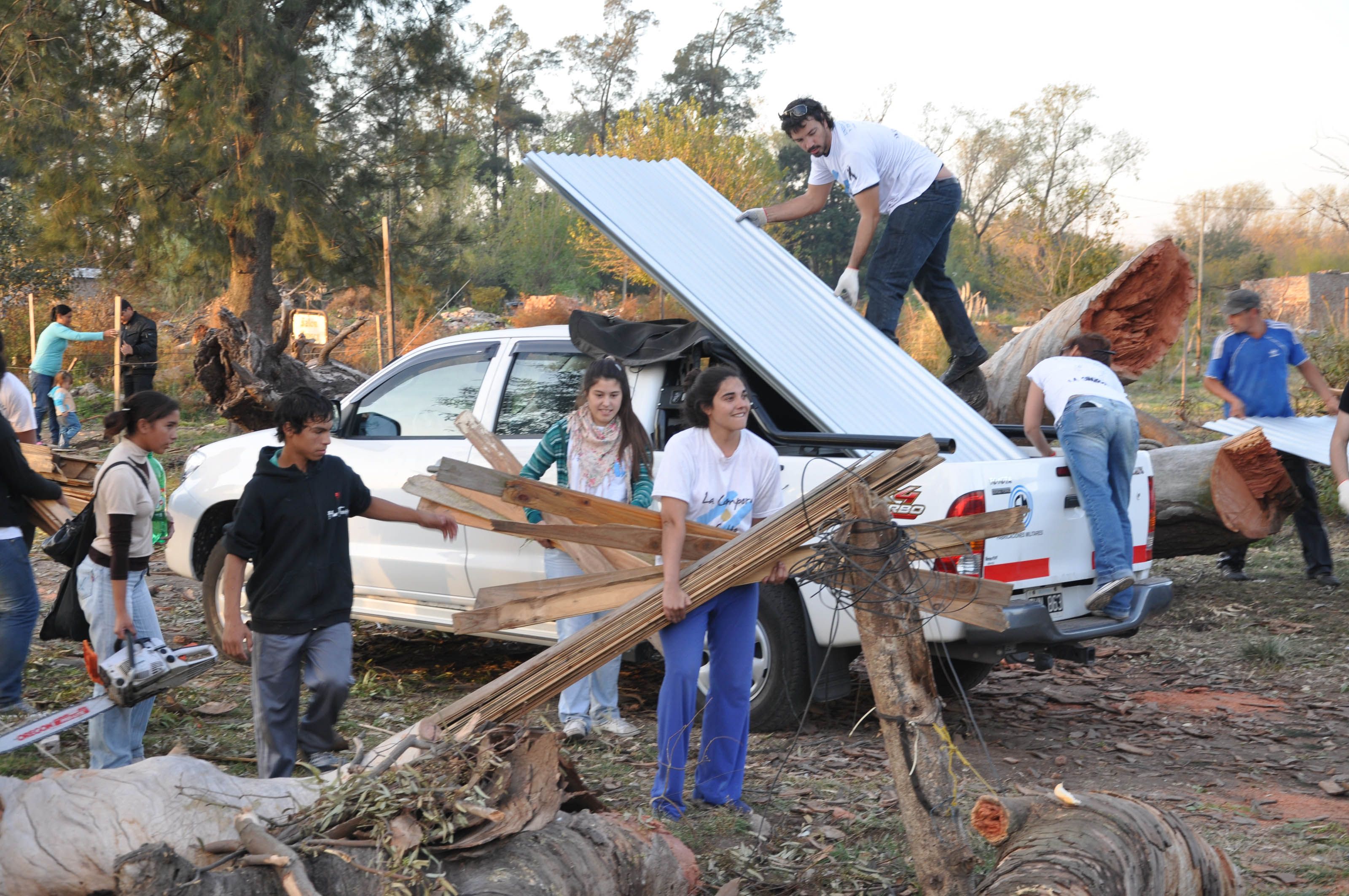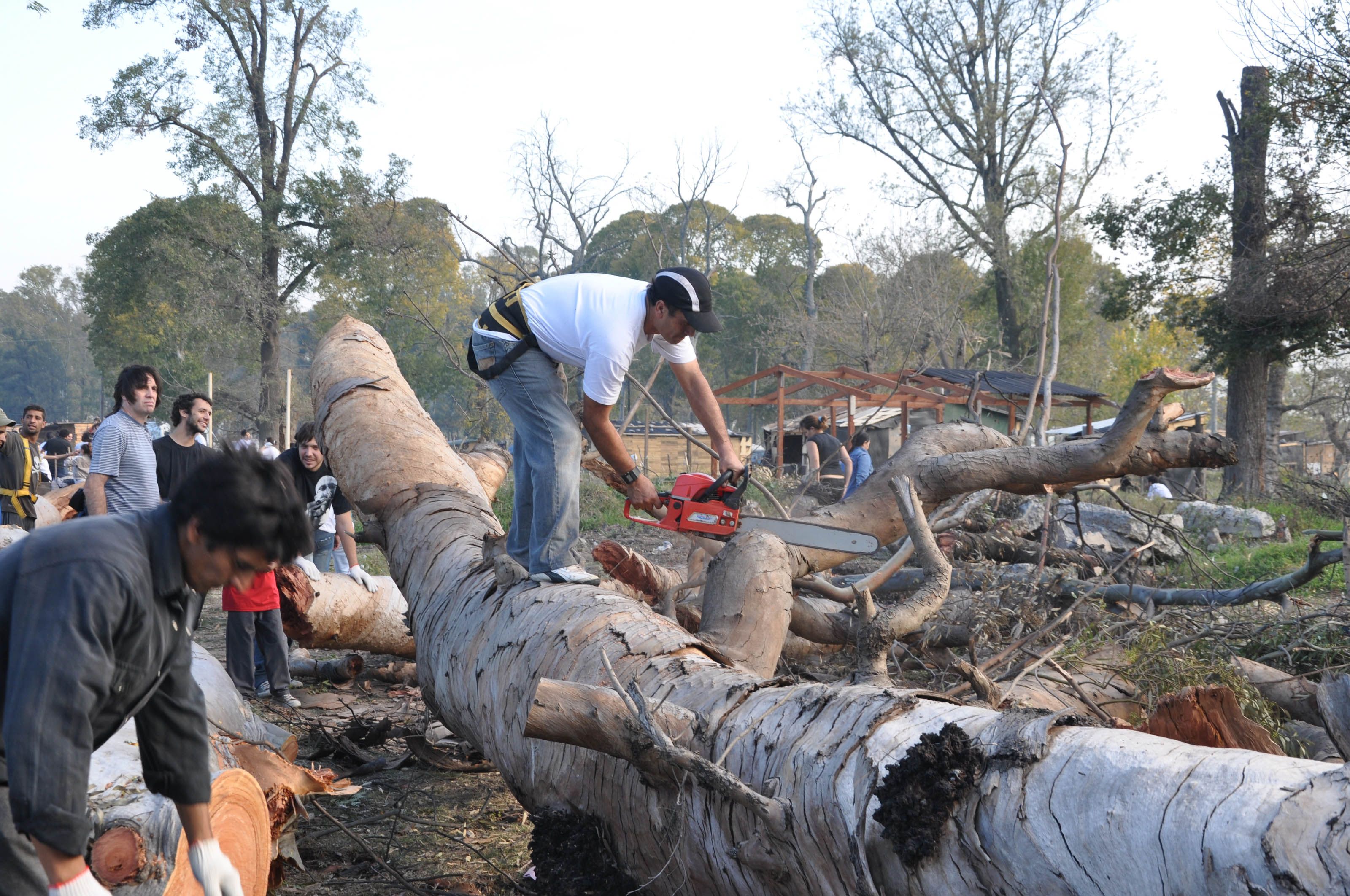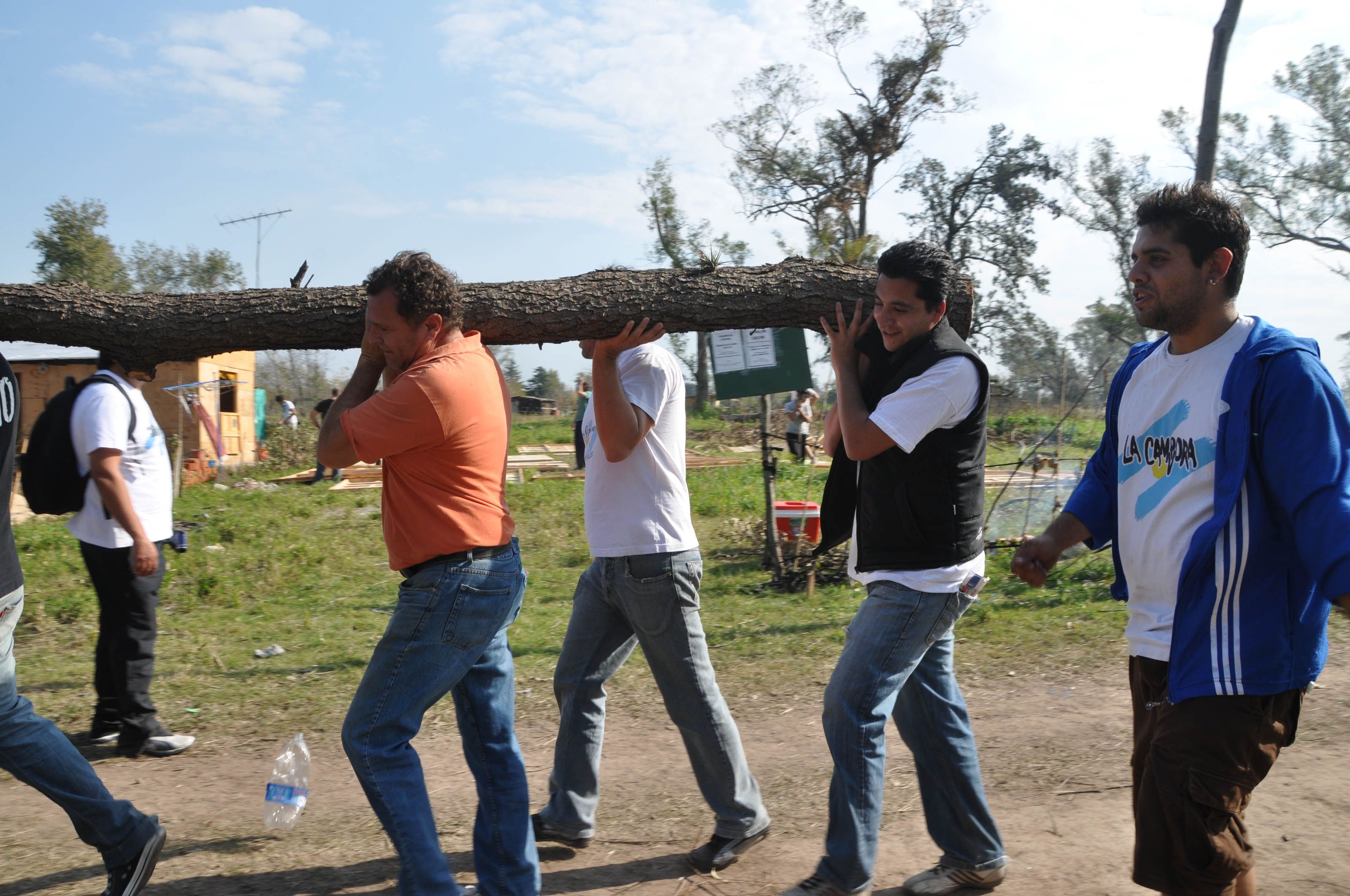 Las tareas fueron: limpiar calles, podar ramas de árboles y levantar viviendas, pero también hubo espacio y tiempo para el fútbol, ya que por ejemplo, en la plaza del barrio Kolynos, se armó un campeonato de fútbol infantil.