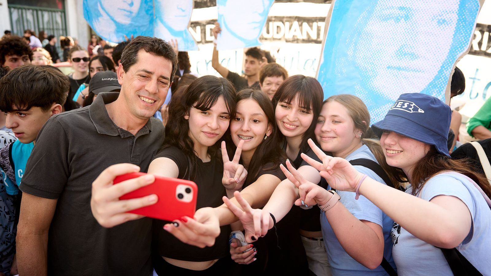 Los cánticos de los pibes resonaban por la Avenida 7 de la Ciudad de La Plata. “A pesar de las bombas, de los fusilamientos, los compañeros muertos, los desaparecidos ¡no nos han vencido!”, se canta a viva voz. Durante el recorrido se sumaron a la movilización la sobreviviente de La Noche de los Lápices, Emilce Moler; la intendenta de Quilmes, Mayra Mendoza; el diputado Nacional, Wado de Pedro y el ex secretario de Derechos Humanos de la Nación y nieto recuperado, Horacio Pietragalla.