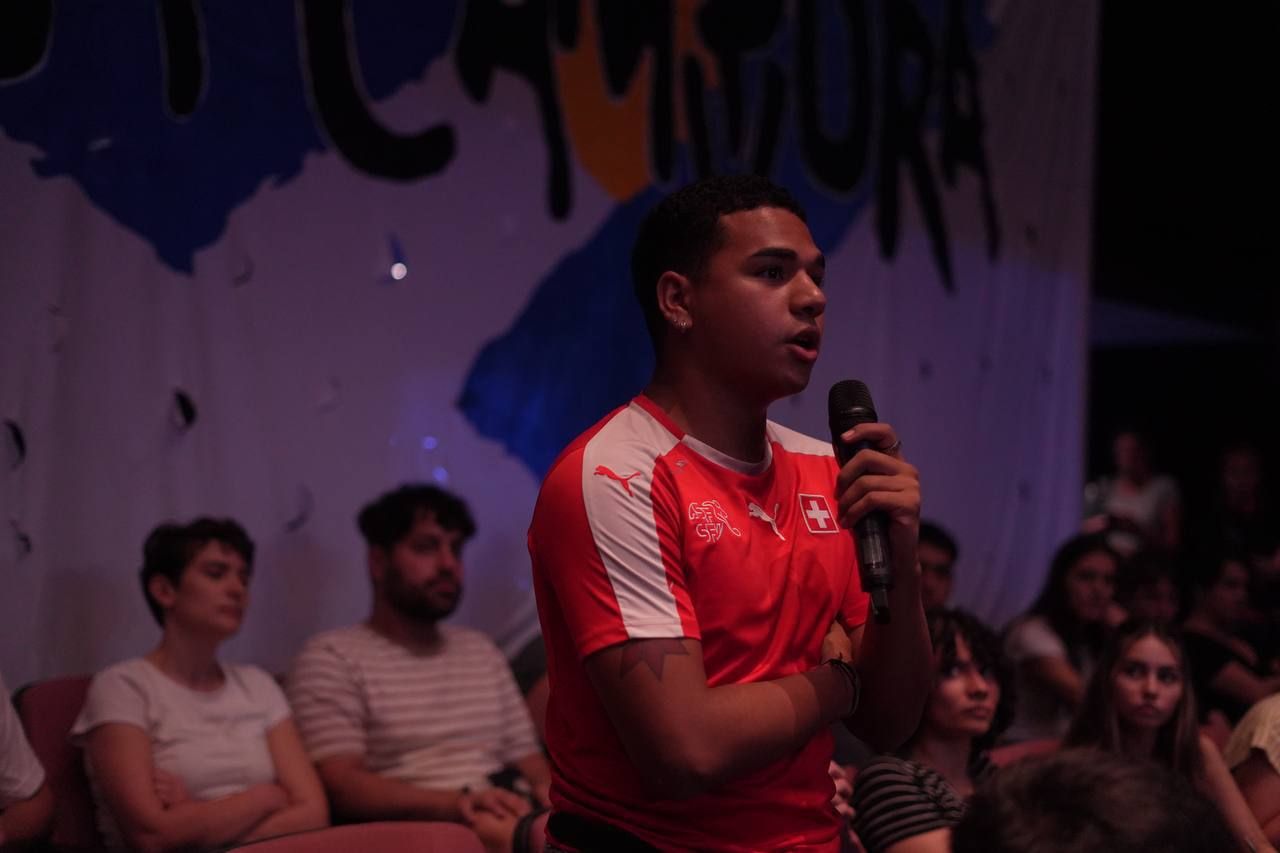 Ayer fue el cierre de este ciclo de verano. Y contó con la participación del compañero Máximo Kirchner, quien conversó con los militantes, acompañado al frente del auditorio por el secretario de la JP de la Ciudad de Buenos Aires, Tomás Lerner, y compañeras y compañeros de los barrios, de los secundarios y las universidades.