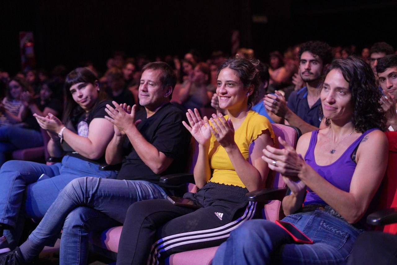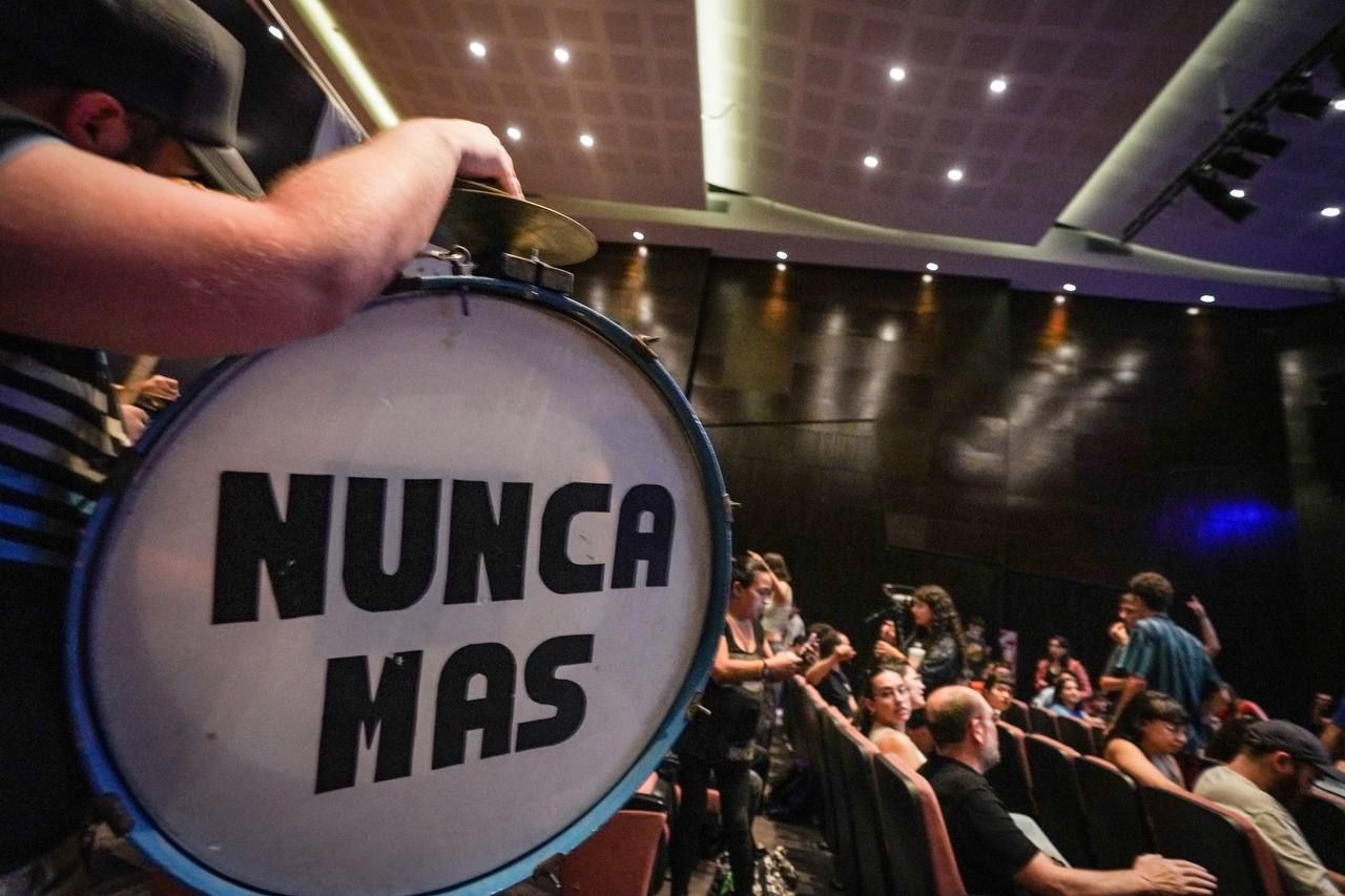 Cerca de las tres de la tarde, y al calor de los bombos y los vientos de Los Dandys de Boedo, la columna de compañeros y compañeras se abrió paso hasta el auditorio.