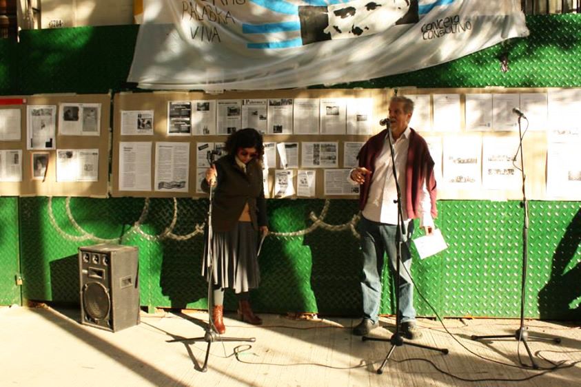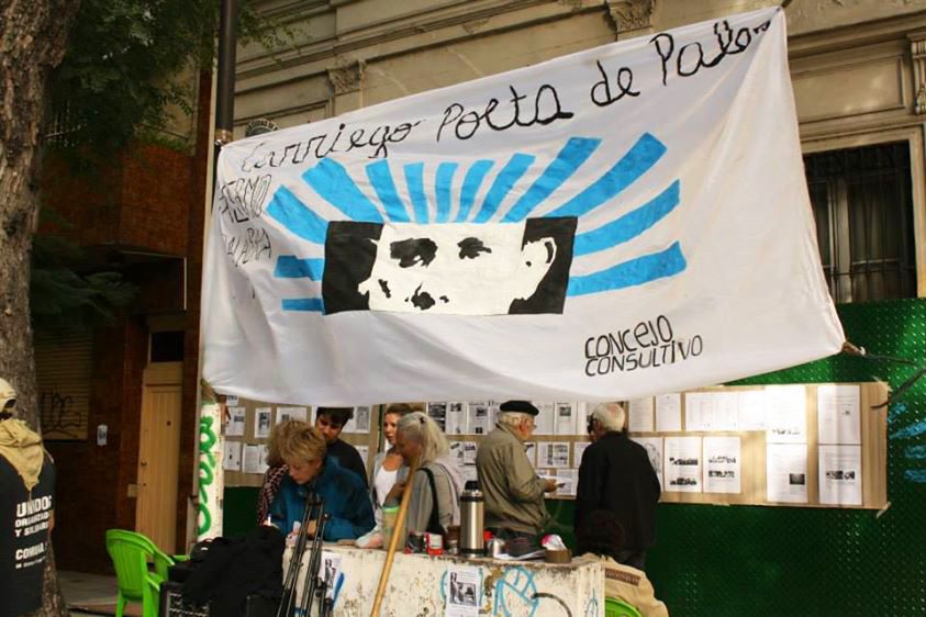 Sobre la parte superior de la cerca que protege el ingreso a la casa, instalaron una tela con la imagen del poeta que rezaba: "Carriego, el poeta de Palermo" y, a un costado, la leyenda "Palermo: palabra viva". En la vereda, se instaló un equipo de sonido con dos parlantes y cuatro micrófonos desde donde hubo varios oradores así como cantantes de tango y el cuarteto Fractura Expuesta. Los animadores y activistas culturales explicaron que se celebraba el reciente fallo del Juez Víctor Trionfetti que condenó al gobierno de la ciudad a restaurar y reconstruir la demolición del interior de la casa. En el barrio, los vecinos ya hablan de la “Causa de Carriegoˮ.
