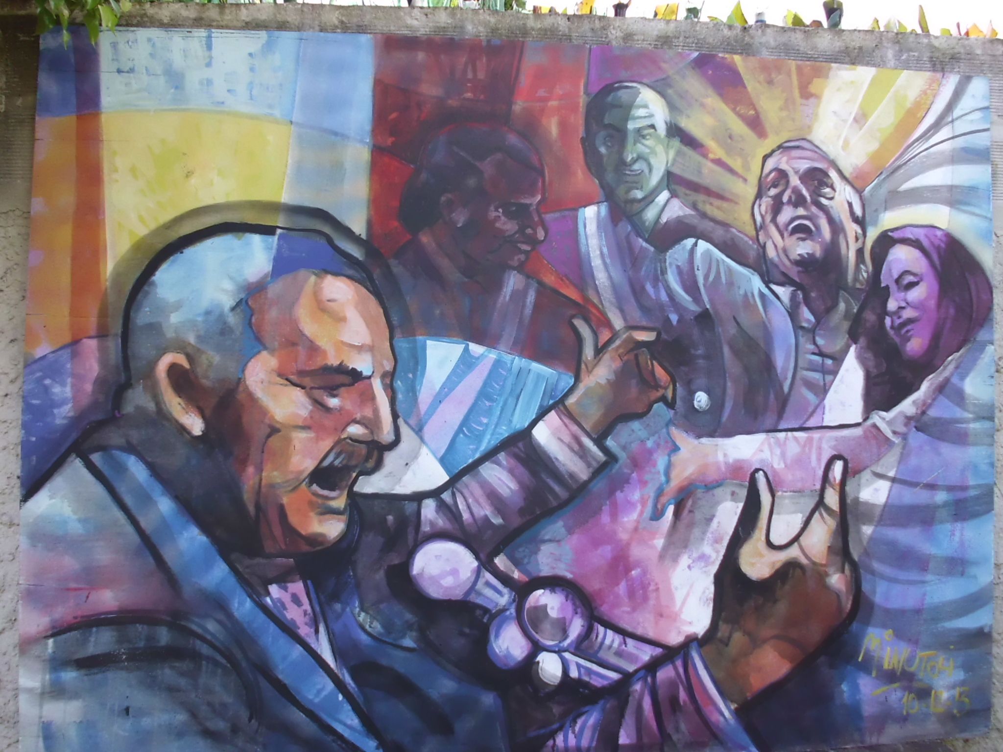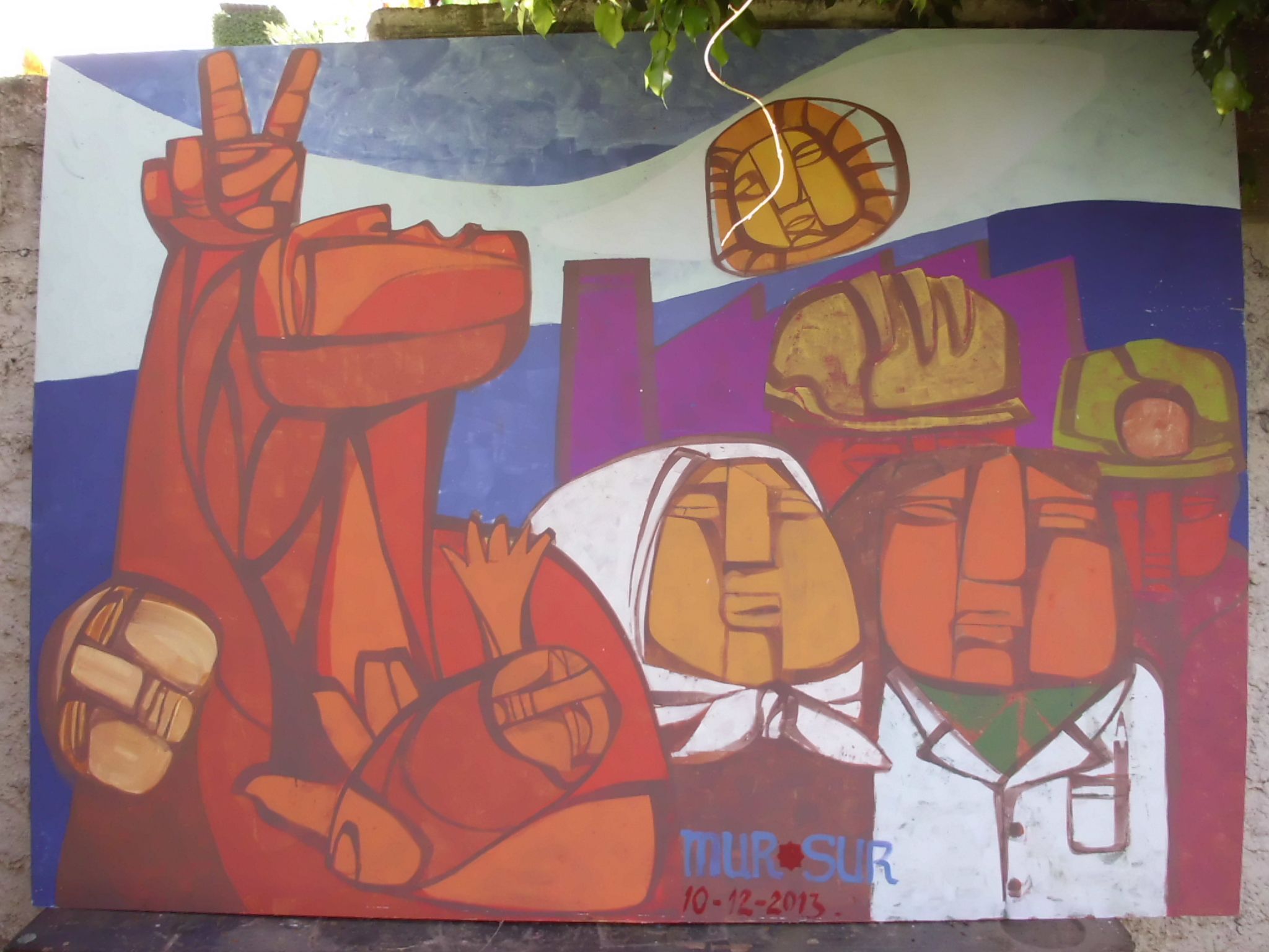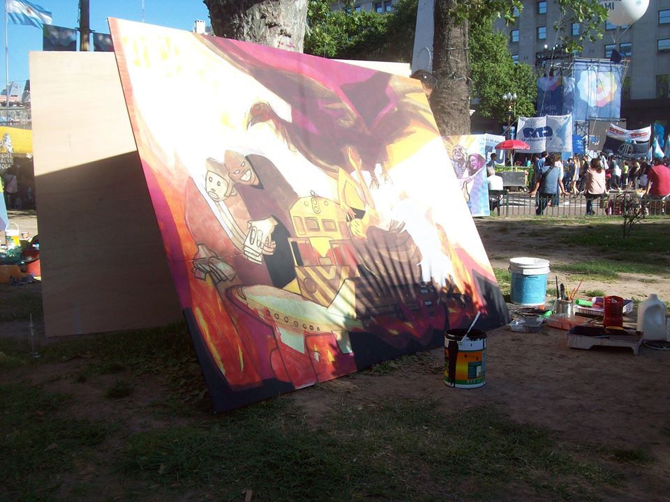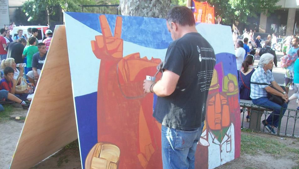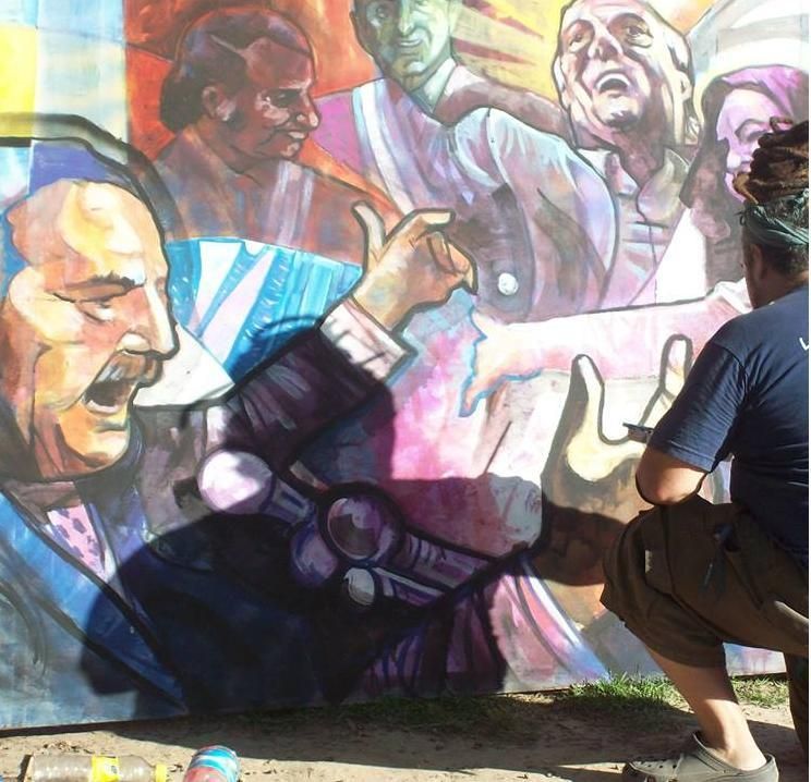 Cuatro obras fueron las que se pintaron con ayuda de todos los compañeros que se acercaban a dar una mano, apoyar y observar el gran trabajo que se estaba realizando. Se tocaron distintos temas, diversas etapas de nuestra querida democracia: el vaciamiento del Estado en los ˮ˜90, los derechos humanos, la recuperación de muchísimos derechos y algunos de los presidentes de estos 30 años.