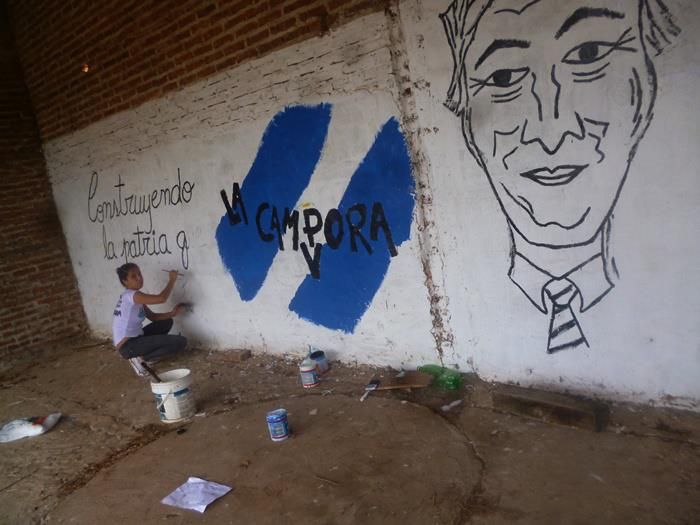 En otro punto de la provincia, en el pueblo Libertador en la localidad de la Esquina, los compañeros de La Cámpora pintaron dos murales. Una pintada fue realizada plasmando las palabras “El proyecto nacional está en Esquinaˮ, para mostrar cómo las decisiones tomadas por Cristina Fernández llegan a todos los rincones de nuestra Patria. El otro mural fue recordando y homenajeando a Néstor: “Construyendo la Patria que él soñóˮ fue la frase que usaron para homenajear al hombre que le devolvió los sueños al pueblo y abrió el camino para la reconstrucción de nuestra Nación.