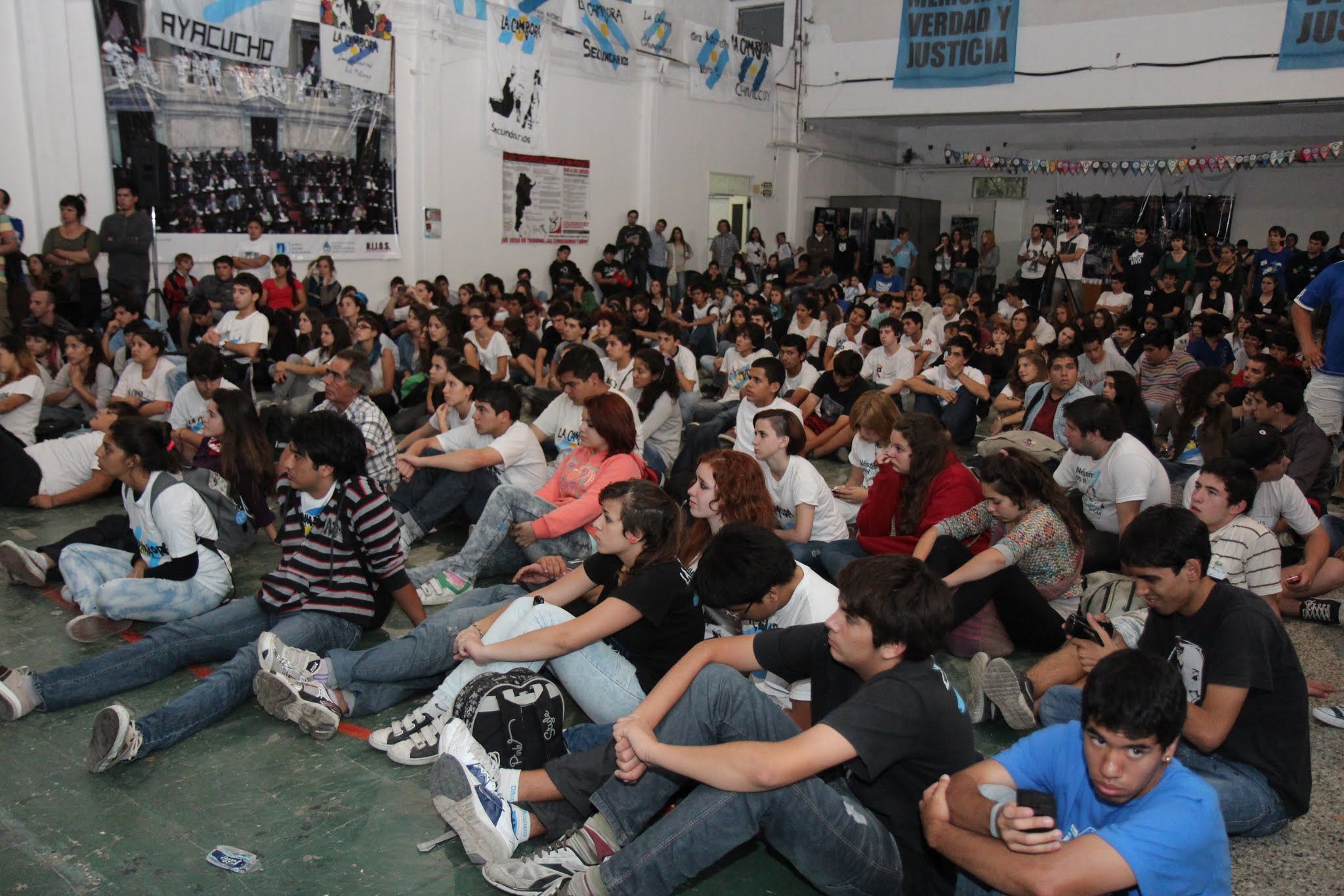 En aquel lugar donde hace 37 años reinaba el odio y la muerte, los secundarios esperaron el cierre del plenario cantando, llenos de alegría y esperanza. Porque hoy, luego de una década ganada, los jóvenes pueden hacer política sin miedo y bajo el reconocimiento de una ley de voto joven que les da la posibilidad de expresarse en las urnas.