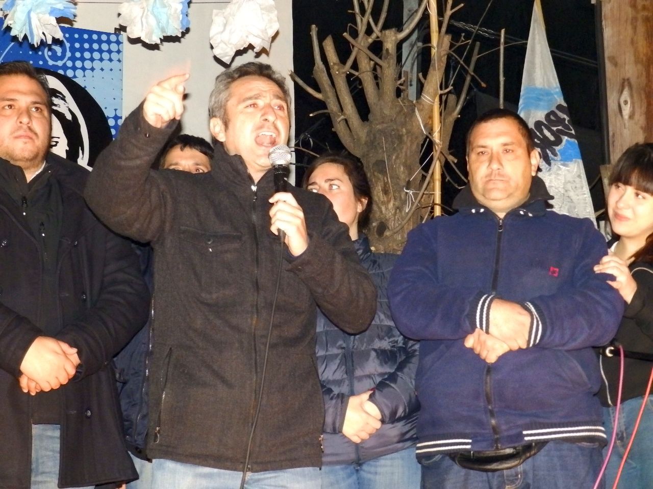 Durante el acto, Larroque estuvo acompañado por los diputados provinciales Miguel Funes, Lucía Portos y Lauro Grande, y por la concejala Roxana López y el referente local Francisco Rosso, quienes también expresaron su repudio y solidaridad por la situación que están atravesando los compañeros de El Prado.