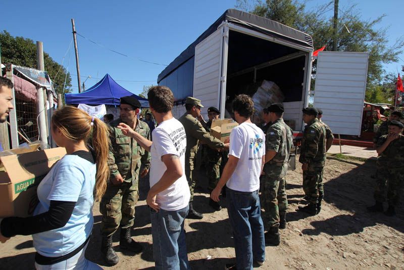 Una nueva jornada de la ayuda solidaria a los inundados de La Plata, la más masiva hasta ahora. La Facultad de Periodismo de la UNLP desbordaba de compañeros desde bien temprano. Se podían ver remeras de todas las organizaciones que integran Unidos y Organizados, de gremios, de todas las provincias y a los soldados del Ejército Argentino dignificando el uniforme.
