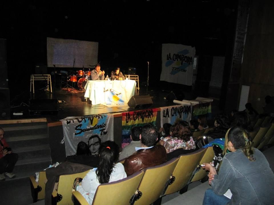 El auditórium del instituto de arte de Trelew se colmó a eso de las 18:30 horas y comenzó la charla abordó los principales puntos de la ley: la creación del Instituto Nacional de Música como órgano de fomento, creación de un circuito estable de música en vivo, formación integral de los músicos, otorgamiento de herramientas que solucionen una parte del proceso productivo de un proyecto musical (vales para fabricar discos, para grabar, masterizar, etc).