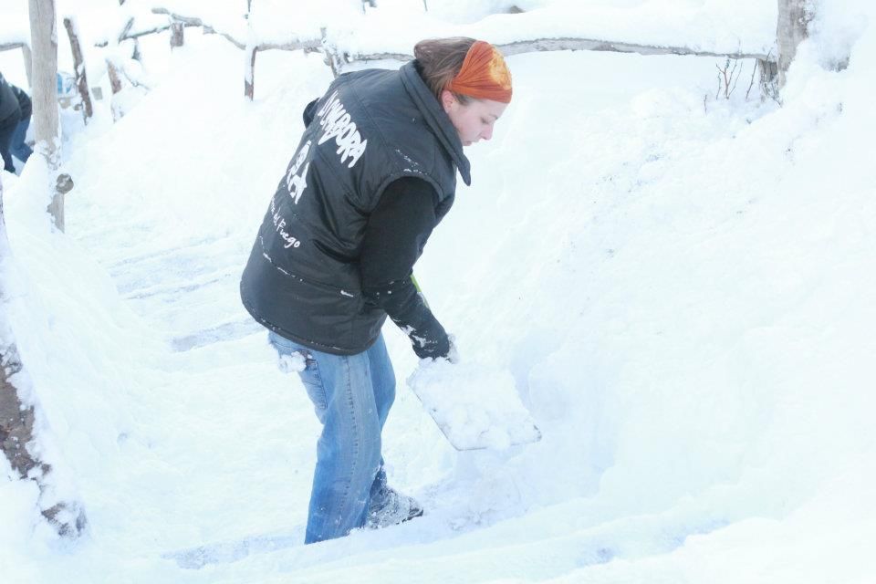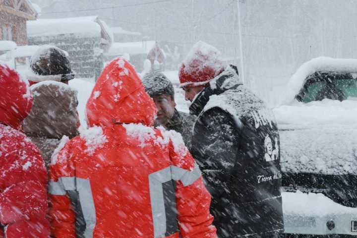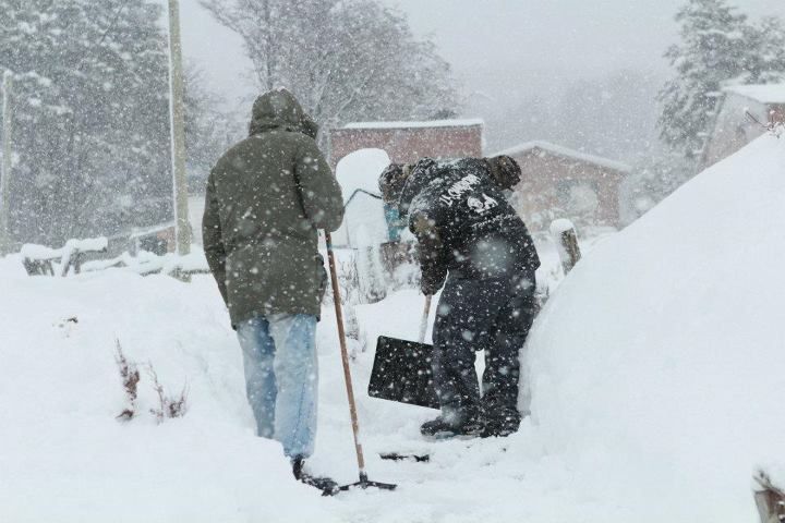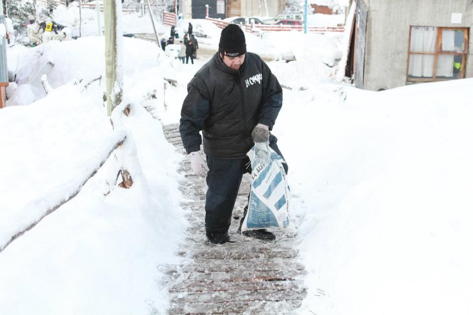 Aprovechando el asueto para los sectores público y privado, el numeroso grupo de compañeros acudió a la convocatoria realizada a través de las redes sociales, para el día lunes a las 10.30 de la mañana y una vez en el campo de trabajo, se realizaron tareas a fuerza de pala para abrir caminos, marcar las escaleras, que posibilitan a los vecinos de las zonas más altas acceder a sus viviendas, acercar víveres, frazadas y ropa a aquellos que lo solicitaban, y arrojar más de 400 kg de Sal (componente que ayuda a disolver la nieve mediante reacción química) en los sectores de acceso normalizados.