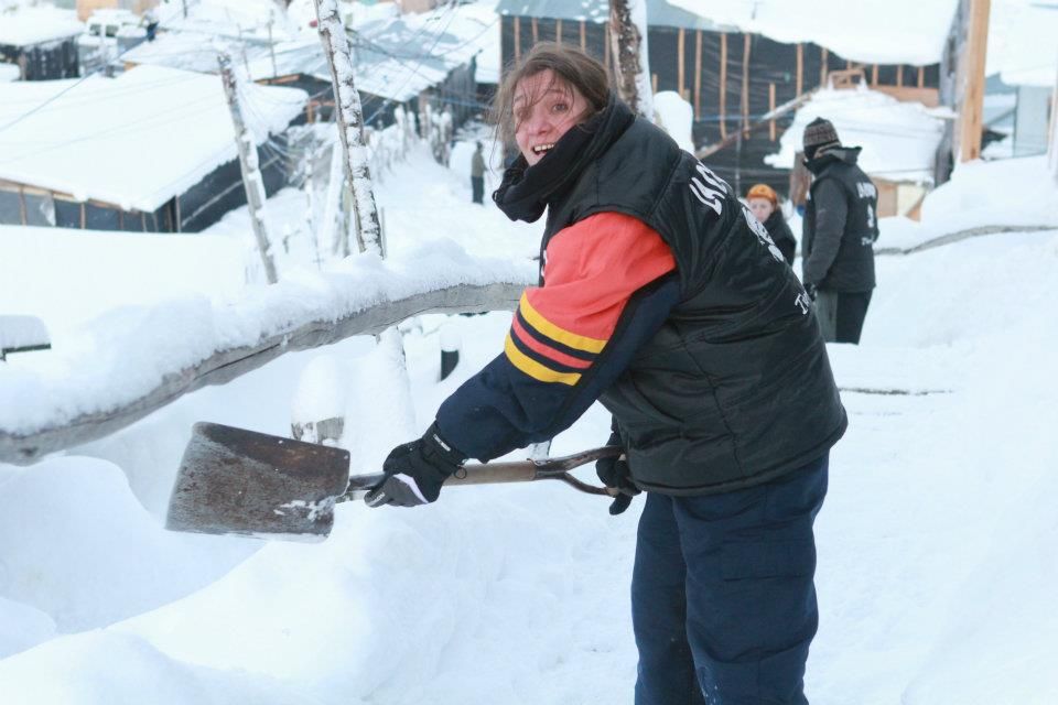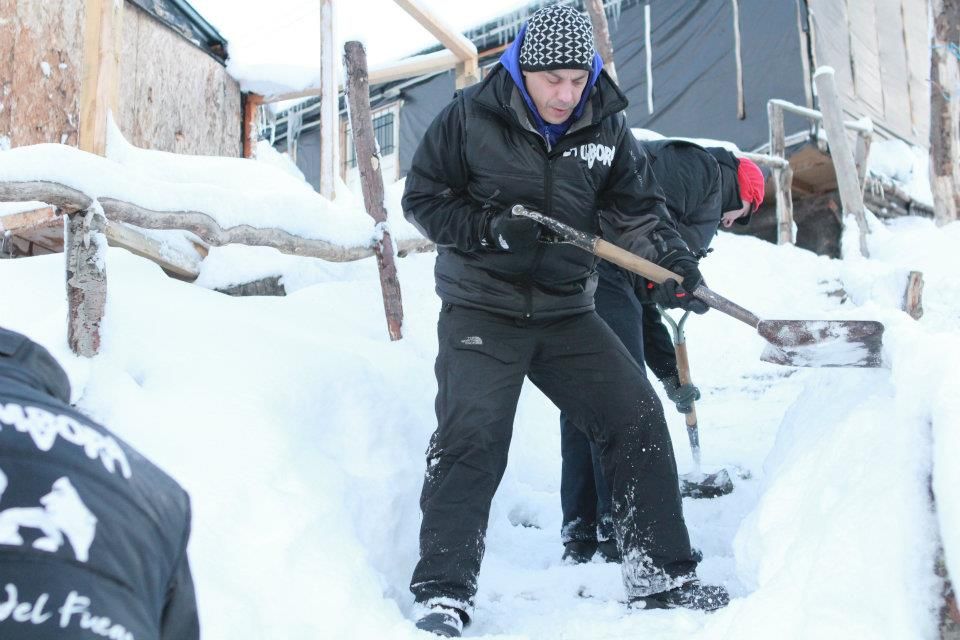 Unos setenta militantes se aprestaron a colaborar con las zonas más afectadas. Con una temperatura menor a los ˮ“ 8 ° grados bajo cero se dispusieron y organizaron en cuadrillas de trabajo para comenzar a solucionar los problemas de los vecinos apostados en los barrios 2 banderas, Obrero, Escondido, y sectores aledaños.