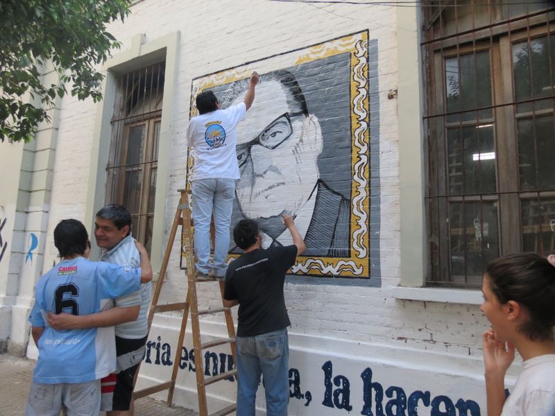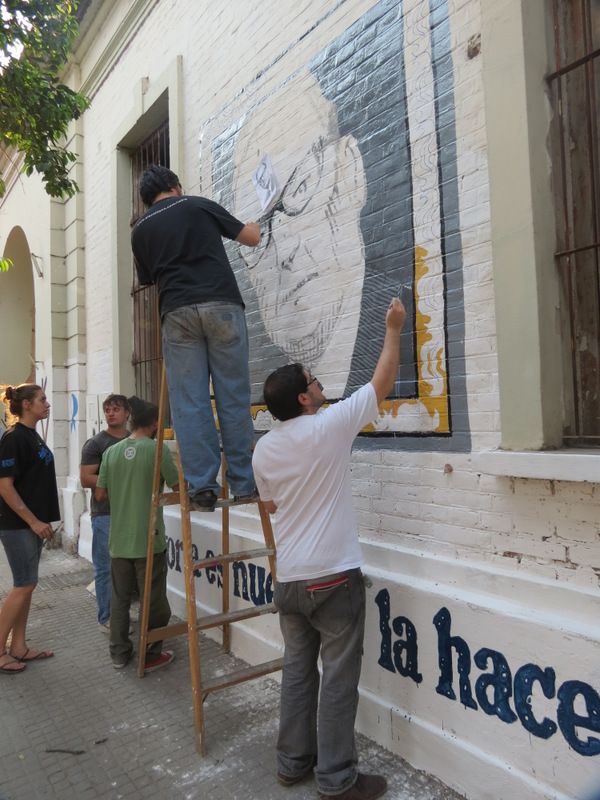 El mural se encuentra dentro de una serie de acciones artístico ˮ“ políticas, que los compañeros de La Cámpora en Tucumán vienen llevando a cabo bajo la consigna “Néstor bajo los cuadros de los genocidas, nosotros colgamos los nuestros, en nombre de los que no se rindieronˮ.