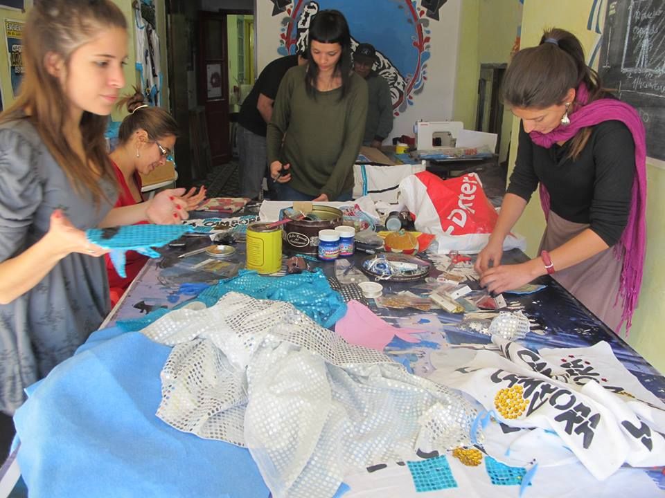 Después llegó la hora de coser, porque una murga no es murga sin sus trajes lleno de colores y de brillo. Cada compañero y compañera, bordó sus apliques con aquellos símbolos y personajes que más lo identificaban, imprimiéndole parte de su identidad a cada uno de ellos.