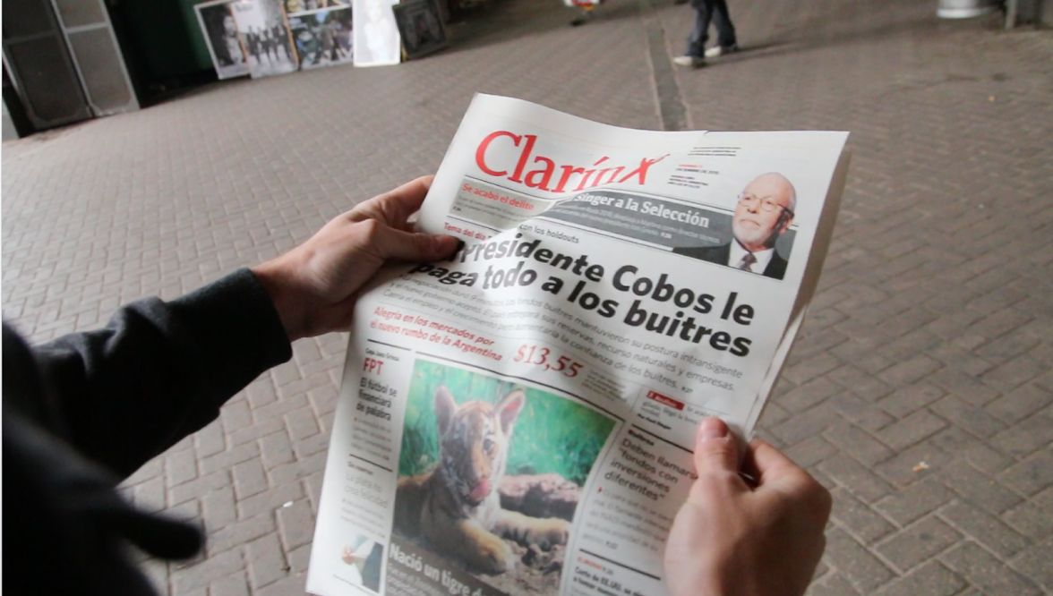 En el marco de una serie de actividades militantes destinadas a concientizar sobre el conflicto planteado por los fondos buitre, durante el día de hoy realizamos una entrega de materiales en diversos puntos del país. El material consiste en una parodia que busca retratar no sólo cuáles serían las consecuencias inmediatas de acatar el fallo del Juez Griesa sino también la forma en la que algunos medios de comunicación “reflejanˮ esa realidad de acuerdo a los intereses que defienden.