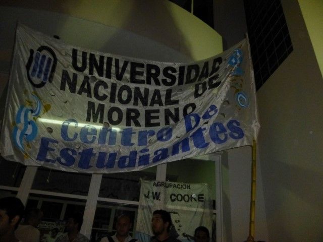 Durante el 11, el 12 y el 13 de noviembre en la Universidad Nacional de Moreno, se realizaron las elecciones de Centro de Estudiantes. La lista 14, de Unidos por la UNM, que es la actual conducción, conformada por las siguientes agrupaciones: La Cámpora, La Lucía Cullen, La John William Cooke, La 125, Kolina, Movimiento Evita, la Unión de Estudiantes de Moreno y estudiantes independientes, se impuso sobre la lista 10 "El Frente", conformada por el MST, el Frente de Izquierda, Libres del Sur, Agrupación El Agite, Agrupación Wimpala y estudiantes independientes.